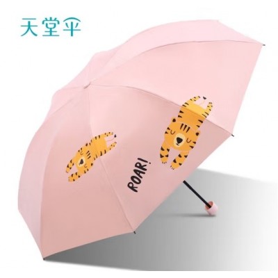 天堂雨伞33822E两只老虎雨伞防晒便携遮阳伞小巧三折叠晴雨两用伞男女- 甜杏粉色雨伞