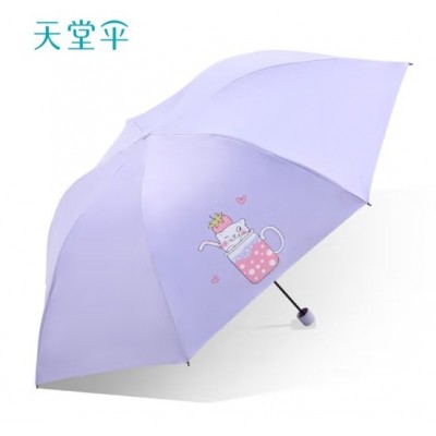 首页 > 建筑建材 > 其他防护用品 > 天堂雨伞33796E夏日喵饮三折超轻便铅笔伞晴雨两用卡通雨伞防晒女-紫色雨伞