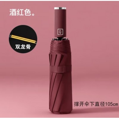 红叶雨伞双龙骨12骨自动雨伞成人遮阳伞加厚黑胶太阳伞礼品广告雨伞-全自动十骨双骨(20根龙骨)酒红色