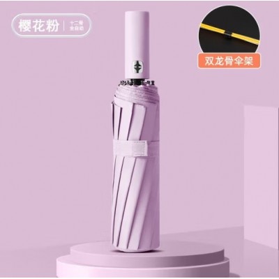 红叶雨伞双龙骨12骨自动雨伞成人遮阳伞加厚黑胶太阳伞礼品广告雨伞-全自动12骨双骨(24根龙骨)樱花粉