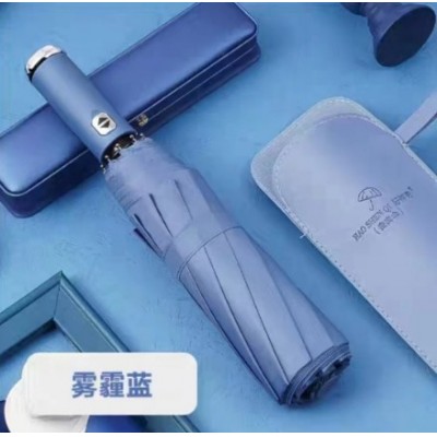 红叶全自动雨伞折叠反向晴雨两用手电筒雨伞太阳伞防晒印广告LG遮阳伞-可旋转双龙手电筒雾霾蓝