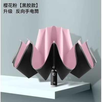 红叶全自动雨伞折叠反向晴雨两用手电筒雨伞太阳伞防晒印广告LG遮阳伞-反向手电筒樱花粉