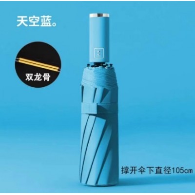 首页 > 建筑建材 > 其他防护用品 > 红叶全自动雨伞折叠反向晴雨两用手电筒雨伞太阳伞防晒印广告LG遮阳伞- 加厚黑胶双龙骨自动伞天蓝