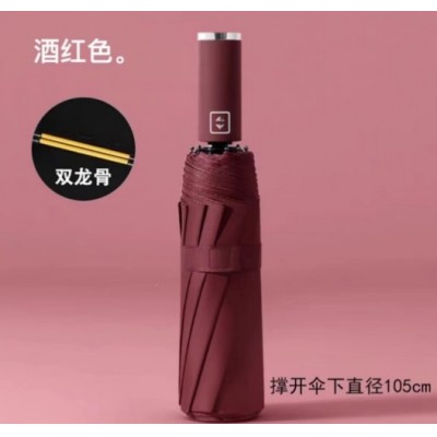 红叶全自动雨伞折叠反向晴雨两用手电筒雨伞太阳伞防晒印广告LG遮阳伞- 加厚黑胶双龙骨自动伞酒红