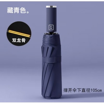 首页 > 建筑建材 > 其他防护用品 > 红叶雨伞全自动UV三折伞黑胶防晒防紫外线遮阳伞女定广告伞印LOGO折叠雨伞- 藏青【10骨双股】