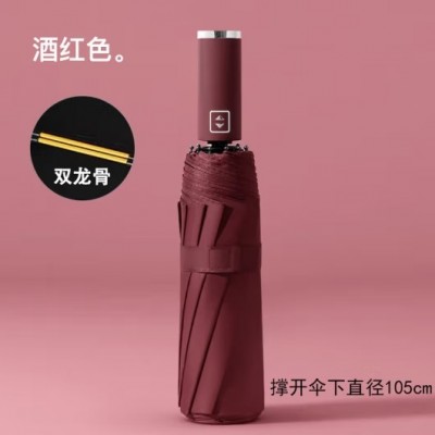 三折雨伞遮阳自动伞加大防晒两用晴雨伞网红24双龙骨广告红叶雨伞-全自动十骨双骨(20根龙骨)酒红色