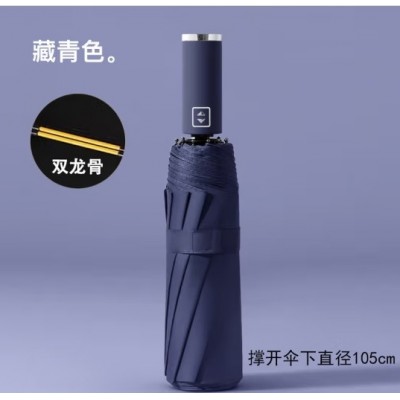三折雨伞遮阳自动伞加大防晒两用晴雨伞网红24双龙骨广告红叶雨伞-全自动十骨双骨(20根龙骨)藏青色
