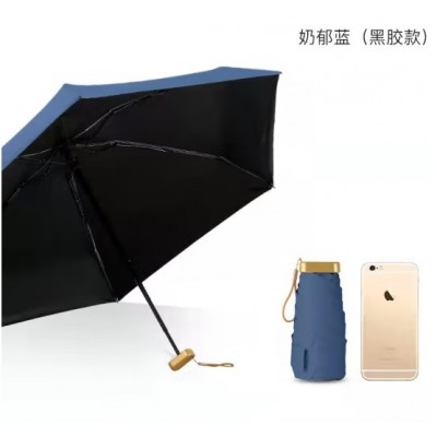 红叶雨伞五折黑胶便携雨伞超轻扁平口袋包包手机伞广告防紫外线两用晴雨伞-奶郁蓝太阳伞
