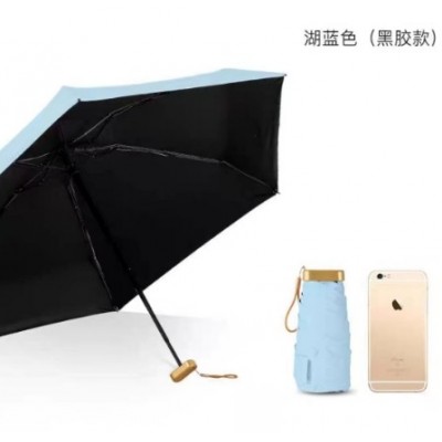 红叶雨伞六折晴雨两用雨伞防晒遮阳伞便携UV金胶太阳手机伞广告伞黑胶款-湖蓝色防晒伞
