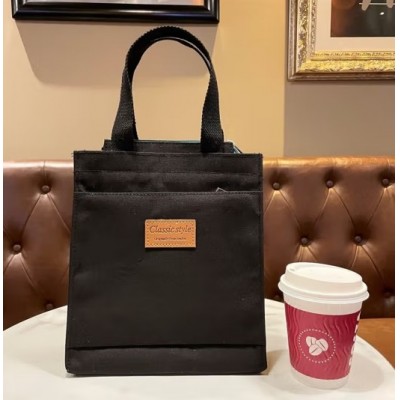 时尚多层帆布包纯色手提袋男女学生帆布袋休闲妈咪包上班简约水杯收纳包-小号黑色(黑色手提带)帆布包