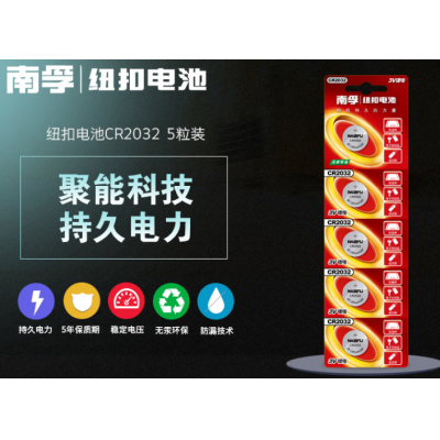 南孚纽扣电池CR2032扣子电池3V/5粒装