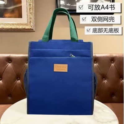 首页 > 装具 > 手提包、背包 > 时尚多层帆布水杯包纯色手提袋男女学生帆布袋休闲妈咪包上班简约水杯收纳包-大号侧兜款蓝色帆布包