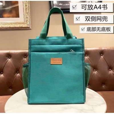 首页 > 装具 > 手提包、背包 > 时尚多层帆布水杯包纯色手提袋男女学生帆布袋休闲妈咪包上班简约水杯收纳包-大号侧兜款绿色帆布包