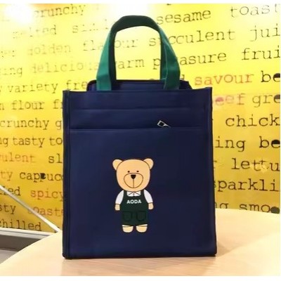 首页 > 装具 > 手提包、背包 > 多层帆布手提袋可爱卡通小熊拉链补课包妈咪包上班饭盒便当包帆布手提袋-深蓝色中号