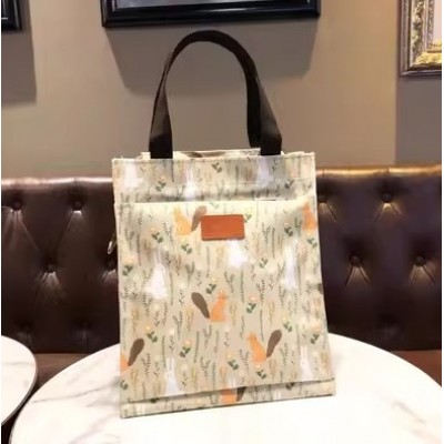 卡通印花A4手提袋防水网红补课包妈咪学生拉链手提袋大容量饭盒手拎包-浅绿松鼠(中号里布款)