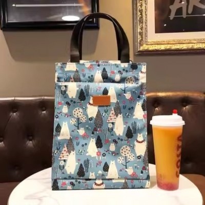 卡通印花A4手提袋防水网红补课包妈咪学生拉链手提袋大容量饭盒手拎包- 天蓝北极熊(大号里布款)
