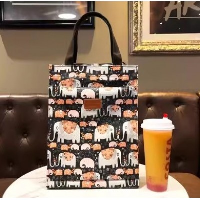 卡通印花A4手提袋防水网红补课包妈咪学生拉链手提袋大容量饭盒手拎包-大象(大号里布款)
