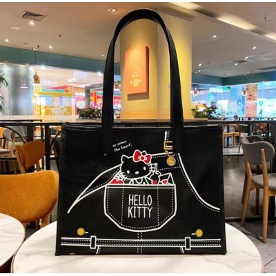 首页 > 装具 > 手提包、背包 > 雾花KT猫PU手提袋单肩背包粉色少女心手提袋花朵图案大容量通勤妈咪包-黑色背带裤单肩背包