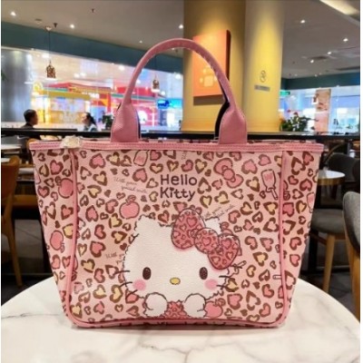 首页 > 装具 > 手提包、背包 > 雾花KT猫PU手提袋单肩背包粉色少女心手提袋花朵图案大容量通勤妈咪包-豹纹T型手提袋款
