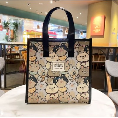首页 > 装具 > 手提包、背包 > 亚麻彩色小熊帆布手提袋卡通妈咪包简约可爱帆布包收纳包大容量单肩背包-四方型黑色手提袋可爱熊
