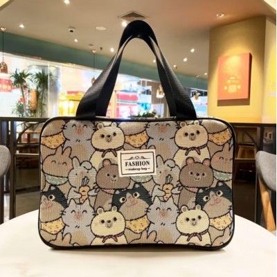 首页 > 装具 > 手提包、背包 > 亚麻彩色小熊帆布手提袋卡通妈咪包简约可爱帆布包收纳包大容量单肩背包-长方型手提袋可爱熊