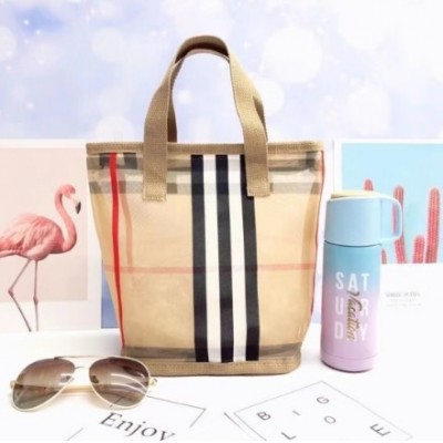 首页 > 装具 > 手提包、背包 > 韩国网红格子包镂空网纱手提袋圆筒化妆包透气四方便携洗澡健身包-米色包边圆筒型