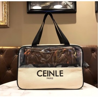 首页 > 装具 > 手提包、背包 > 半透明洗澡包简约化妆包便携帆布字母拉链手提袋时尚四方大容量收纳包-大号卡其色手提袋