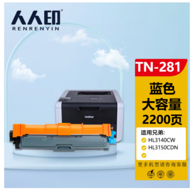 首页 > 办公用品 > 鼓粉盒 > 人人印TN-281/TN-285C蓝色粉盒适用兄弟HL-3140 HL3150CDN HL3170CDW DCP9020 MFC9130 9140 9330 9340专业版