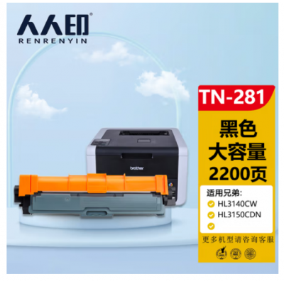 首页 > 办公用品 > 鼓粉盒 > 人人印TN-281/TN-285BK黑色粉盒适用兄弟HL-3140HL3150CDN HL3170CDW DCP9020 MFC9130 9140 9330 9340专业版
