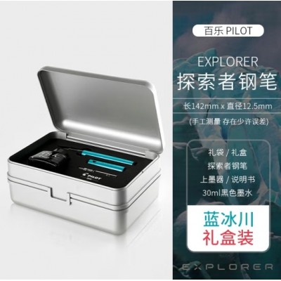 百乐FPEX1-I30BC40探索者 钢笔+墨水套装 F咀 学生成人练字送礼钢笔套装礼盒-冰川蓝钢笔