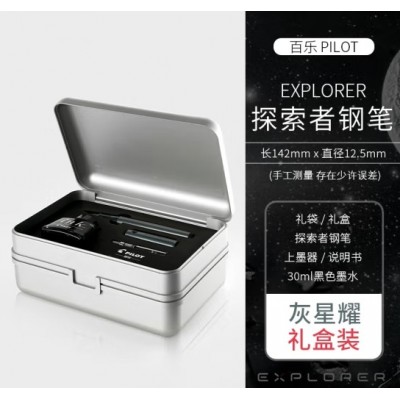 百乐FPEX1-I30BC40探索者 钢笔+墨水套装 F咀 学生成人练字送礼钢笔套装礼盒-灰星耀钢笔