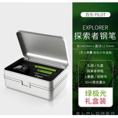 百乐FPEX1-I30BC40探索者 钢笔+墨水套装 F咀 学生成人练字送礼钢笔套装礼盒-极光绿钢笔