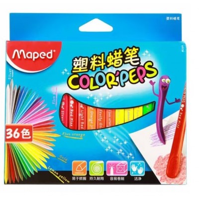 Maped马培德 塑料蜡笔 学生美术画笔儿童易握 不粘手三角杆蜡笔 36色 862004