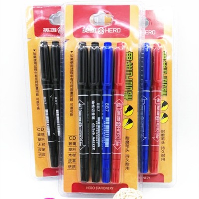 首页 > 办公用品 > > 英雄887-4油性记号笔签字小双头记号笔CD光盘笔勾线笔标记笔4支装