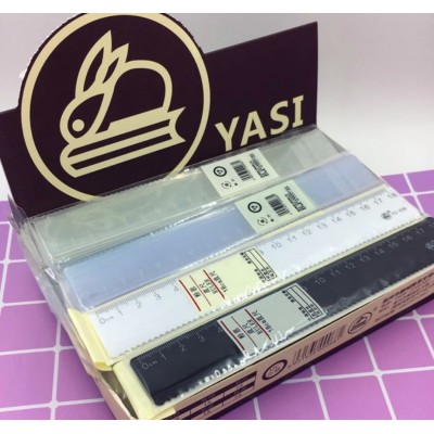 雅思638果冻色黑白透明直尺波浪线18CM办公适用尺子-一把装黑白色(60把/盒)