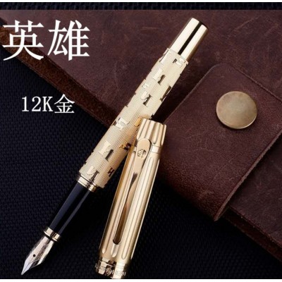 英雄金笔钢笔2057商务成人用练字12K金笔办公墨水笔明尖书写钢笔礼品