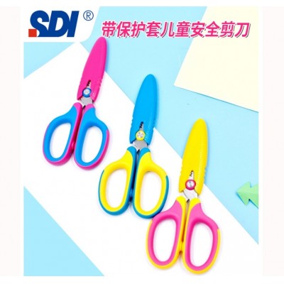 手牌sdi带保护套儿童剪刀幼儿园手工不锈钢剪子软柄圆头剪0924剪刀- 5 1/4”单把装(11把/包)