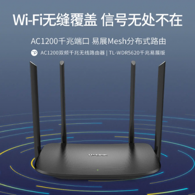 首页 > 信息化设备 > 路由器 > TP-LINK双千兆路由器 易展mesh分布式 AC1200无线家用穿墙 5G双频 WDR5620千兆易展版 配千兆网线 IPv6 d23