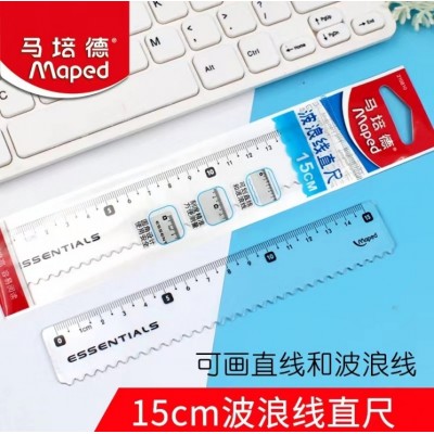 马培德15cm透明波浪尺学生用画图尺子刻度作业用线格塑料曲线尺-单把装(12把/盒)