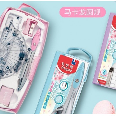 马培德马卡龙色可爱圆规实用套尺套装可夹笔女生画图学习尺子学生-单套(9套/盒)