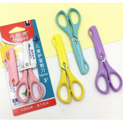 马培德 46304儿童保护套剪刀 圆头设计左右手可用剪刀 挂孔设计剪刀1把混色(12把/盒)