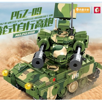 森宝轮式自行高炮坦克组装模型男孩小颗粒拼装积木203118