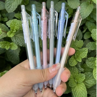 东米按动中性笔透明杆921A水笔0.5mm黑芯-混色单支装(12支/盒)