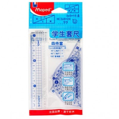 首页 > 办公用品 > 文具 > 马培德Maped 学生套尺4件套 直尺三角尺量角器绘图套装 尺子学生波浪直尺15cm塑料透明尺格尺套装