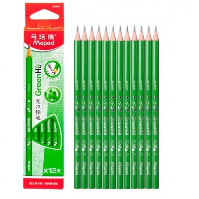 马培德Maped 无木铅笔HB/12支 小学生幼儿园写字铅笔书写练字素描绘图铅笔套装12支装852612