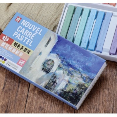 樱花硬质粉彩12色四角型粉彩棒绘画画画美术适用XNCTC