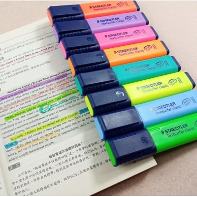 首页 > 办公用品 > > 德国施德楼364 荧光笔学生办公彩色系软斜头记号标记手账8色紫色单支装(10支/盒)