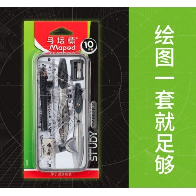 马培德Maped学子圆规套装中学生高中生十件套铁盒装圆规194109CH单盒装(10小盒/大盒)