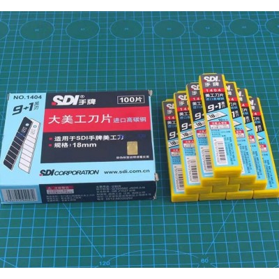 手牌1404大美工刀18mm60度角刀片贴膜雕刻壁纸刀片切割替芯碳钢单个装(10个/盒)