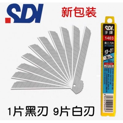 台湾SDI手牌1403系列碳钢9mm小刀片墙纸壁纸裁切介刀片单盒装(10小盒/大盒)